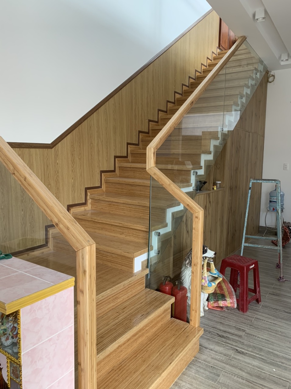 Với trình độ của thợ có tay nghề,có chuyên môn kỹ thuật, thẩm mỹ sự kết hợp Cầu thang tre tự nhiên công nghệ Nhật Bản, ốp tường gỗ công nghiệp tạo vẻ đẹp sang trọng, đẳng cấp .